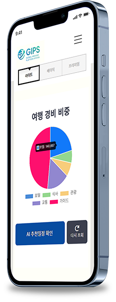 GIPS는 인공지능으로 전국 권역 및 주변 도시를 연계하여 최장 10일 체류 일정을 자동 설계하고, 실시간 요금을 함께 제시합니다.